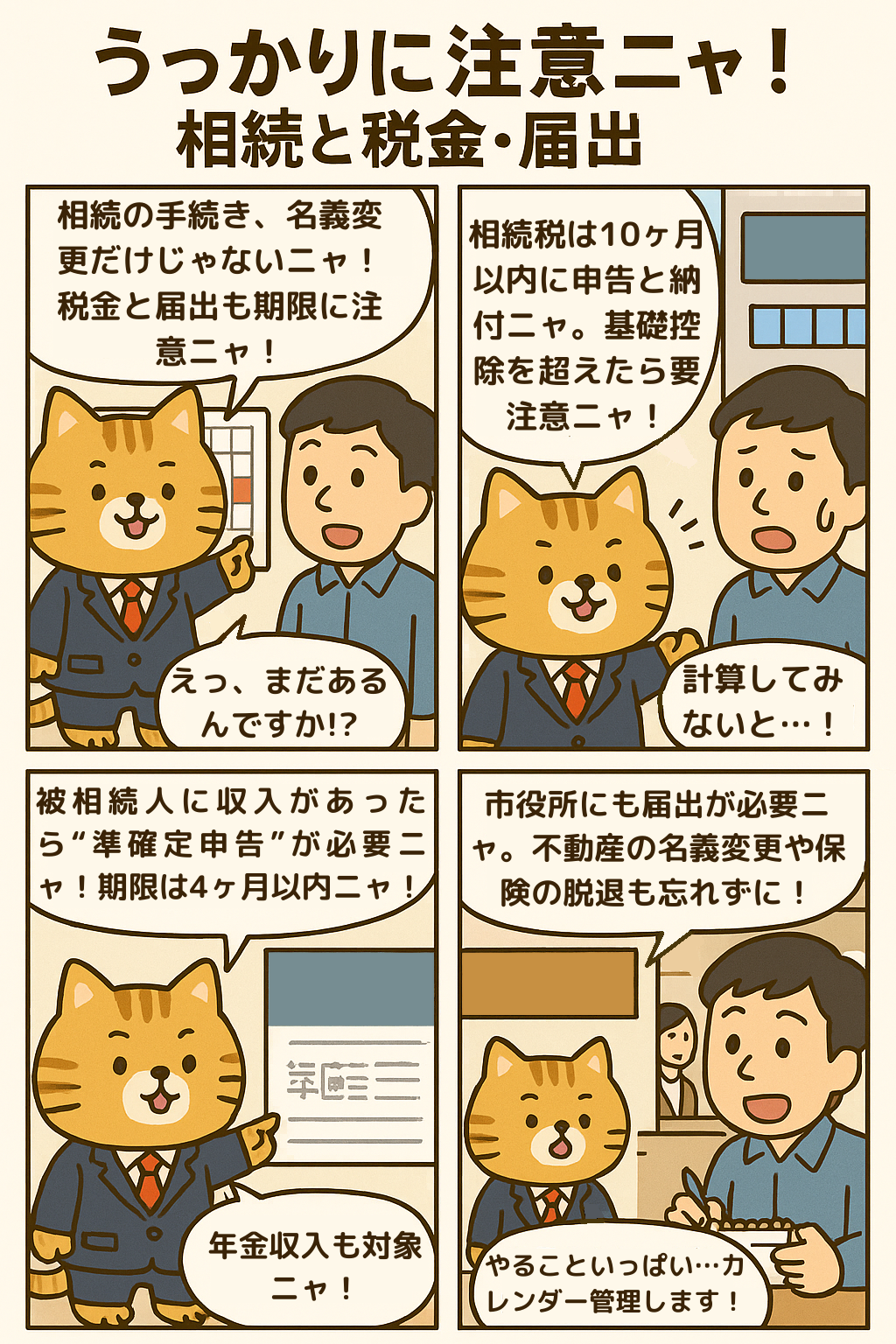 うっかりに注意ニャ!相続と税金・届出